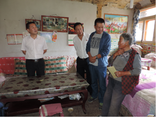 朝物開投公司副總經(jīng)理喇軍民、物產(chǎn)汽貿(mào)公司董事長張建軍、機電市場公司市場部部長王功明以"三幫一"的方式結對幫扶絕對困難戶楊生福。楊生福,男,藏族,61歲,家中三口人,本人肢體四級殘疾,妻子四級殘疾(羅鍋),兒子30歲,現(xiàn)安排在當?shù)貜氖伦o林員工作,未結婚,住房為土木結構,此次結對幫扶為其送去了600元慰問金。