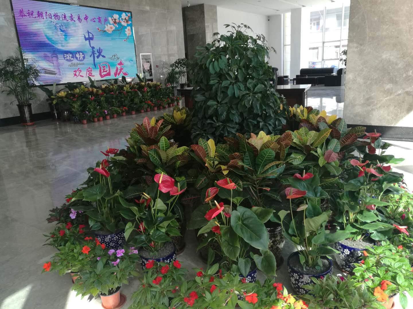 (朝物開(kāi)投 訊 戴韻禮/文攝)為慶祝建國(guó)68周年,朝陽(yáng)物流開(kāi)發(fā)投資有限公司開(kāi)展"喜迎國(guó)慶,歡度中秋"的準(zhǔn)備工作。我公司在物產(chǎn)大廈門前紛紛懸掛起國(guó)旗和大紅燈籠,營(yíng)造喜慶祥和的節(jié)日氣氛。在樓內(nèi)大廳擺放鮮花,迎接國(guó)慶節(jié)的到來(lái)。把黨的關(guān)心和關(guān)懷傳達(dá)到每一名員工,讓全體員工都能感受到公司"大家庭"的溫暖。也為喜迎黨的十九大勝利召開(kāi)做好前期宣傳工作。