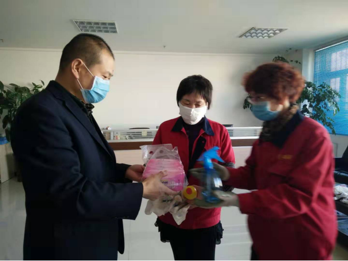 守護(hù)職工筑牢"安全防線":物產(chǎn)配送公司黨委通過配發(fā)酒精40公斤、84消毒液6瓶、消毒濕巾等防控器具,及時(shí)組織黨員指導(dǎo)職工進(jìn)行防控工作,重點(diǎn)對宿舍、辦公室、值班室、洗手間門把手、辦公桌椅等進(jìn)行噴灑消毒。
